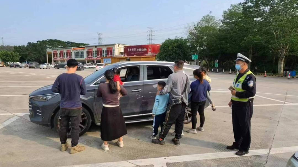 4月9日16許,惠州市公安局交警支隊高二大隊執(zhí)勤民警在汝湖服務(wù)區(qū)開展春季守護整治行動,對一輛粵A號牌小客車進行檢查時發(fā)現(xiàn),該車核載5人,實載7人(4個大人3個小孩),超員2人。