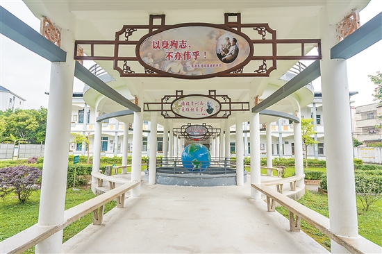 “原來的校門較為簡單,只砌了兩邊的磚柱,安裝了鐵門。后來考慮到校門的美觀,以及學校功能的需求,2022年由鹿頸村委會籌資重建校門。”演達學校校長林淑軍介紹,如今學校的心理輔導室、體育器材室、保安室等功能室安置于此,校門的社會屬性、實用功能、裝飾美化得以展現(xiàn)。