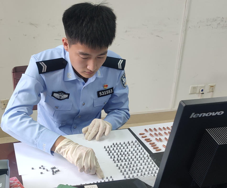 2023年4月7日,這是我第一次參與緝槍收網(wǎng)行動,盡管我們前期已經(jīng)摸排出了嫌疑人的活動范圍,但要在地形復(fù)雜、人口眾多的城中村中確定嫌疑人的具體位置仍是一件難事,組織安排我化身“外賣小哥”開展化裝偵察,經(jīng)過連續(xù)一周的跟蹤、盯梢,我們終于在一間不起眼的出租屋中發(fā)現(xiàn)了嫌疑人,并查獲疑似氣動力步槍5支,疑似軍用子彈21發(fā),鉛彈兩百余發(fā),槍支配件一批。