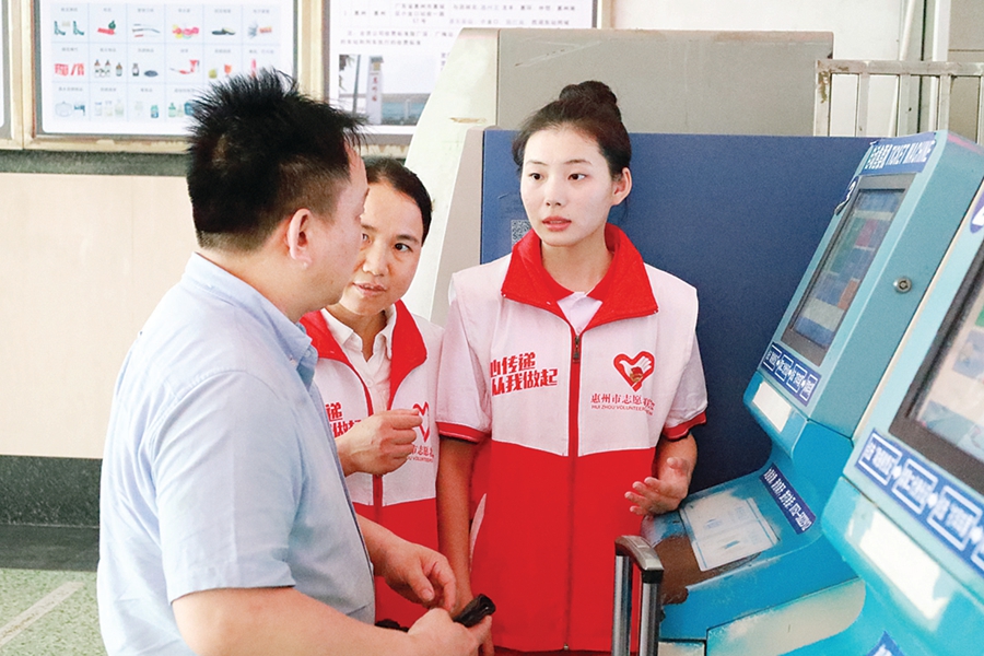楊采婷常常利用假期時(shí)間,跟隨家人前往莞惠城際西湖東站的惠鐵學(xué)雷鋒志愿服務(wù)站,為旅客提供安全提醒、咨詢指引、購(gòu)票幫助、扶老攜幼等志愿服務(wù)。2020年春運(yùn)期間,她和家人一起在惠州火車(chē)站做志愿者,為旅客提供暖心服務(wù)。