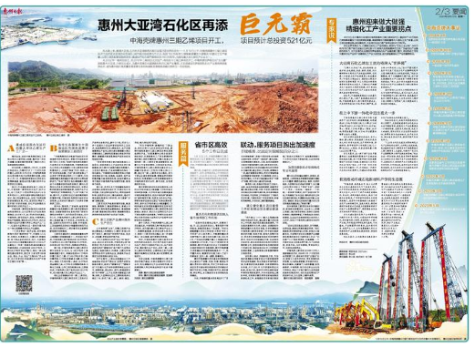 惠州日報、惠州電視臺視頻號發(fā)布《又一巨無霸項目開工!》《從0到1,從1到2,從2到3,她在惠州大亞灣筑夢、展翅、翱翔!》等新媒體產(chǎn)品,視頻內(nèi)容讓人耳目一新,被廣泛轉(zhuǎn)發(fā)并收到大量點贊。5月22日,惠州日報通版大篇幅報道項目從籌建到開工的過程,采訪多位行業(yè)專家就項目市場前景和產(chǎn)品工藝技術進行分析討論。
