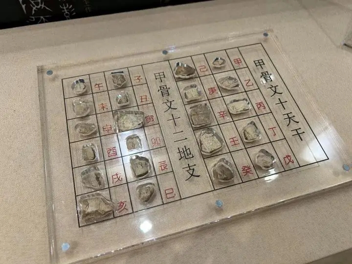 記者了解到,本次展覽展出河南安陽(yáng)出土的60多片甲骨文原件、兩件春秋早期帶銘文的青銅器及荊州出土一套戰(zhàn)國(guó)時(shí)期竹牘(復(fù)制品),同時(shí)展出的還有珍貴的族徽拓片32件、碑拓22件,全方位闡述了中國(guó)文字的發(fā)展歷程。此次展覽共計(jì)展出文物及有關(guān)展品147件,分為“甲骨文”、“青銅器”、“竹牘”、“族徽拓片”及“碑拓”五部分。