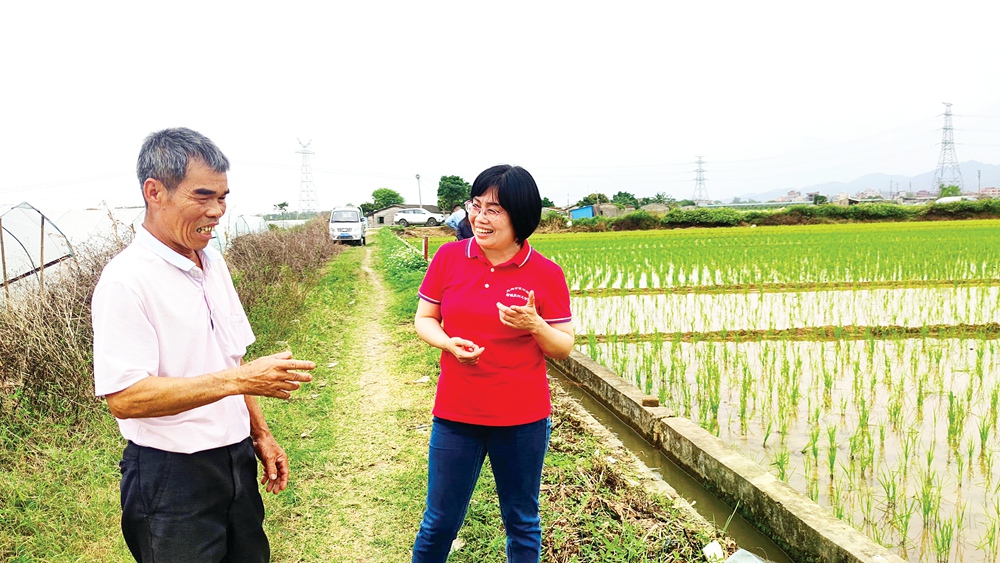 初夏時(shí)節(jié),萬(wàn)物生機(jī)勃發(fā)。走進(jìn)惠城區(qū)汝湖鎮(zhèn)圍仔村,一片片綠油油的稻田映入眼簾。得知“科技特派員”王國(guó)莉又到村里來(lái)了,村民楊益富放下身邊雜活,趕忙把她請(qǐng)到插滿(mǎn)青秧的田間,為剛插播即將富硒的水稻“把脈”。