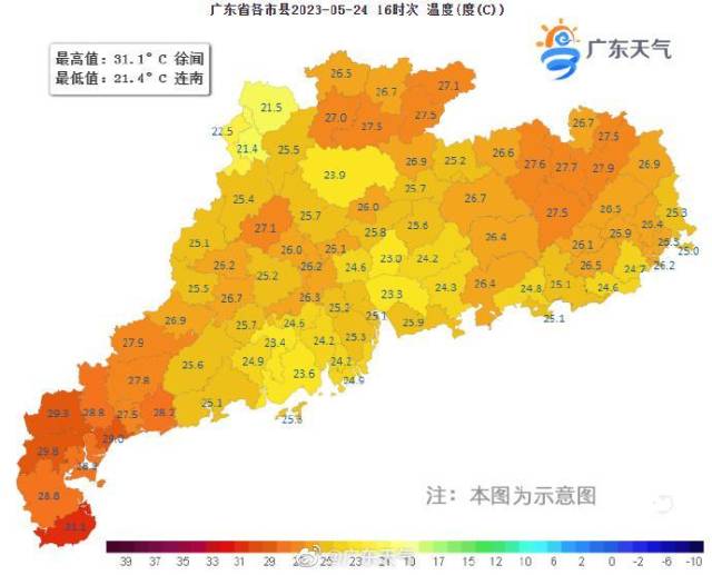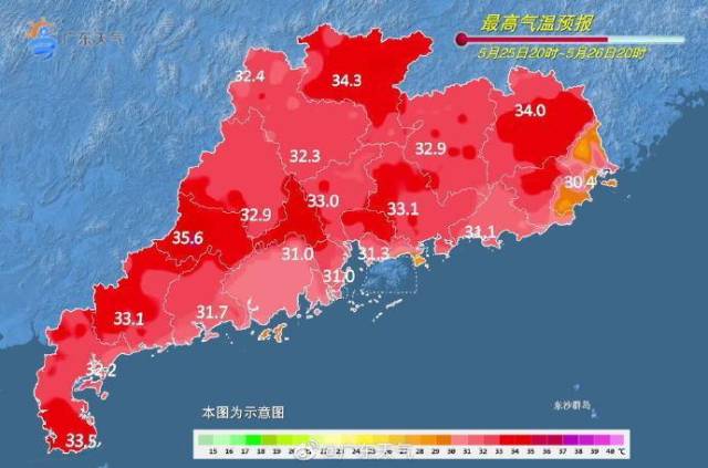 @廣東天氣 預(yù)計(jì)25日降水減弱,大部有(雷)陣雨,氣溫回升,部分市縣有35℃左右高溫;26日-27日大部晴到多云,35℃及以上高溫范圍擴(kuò)大,天氣炎熱。