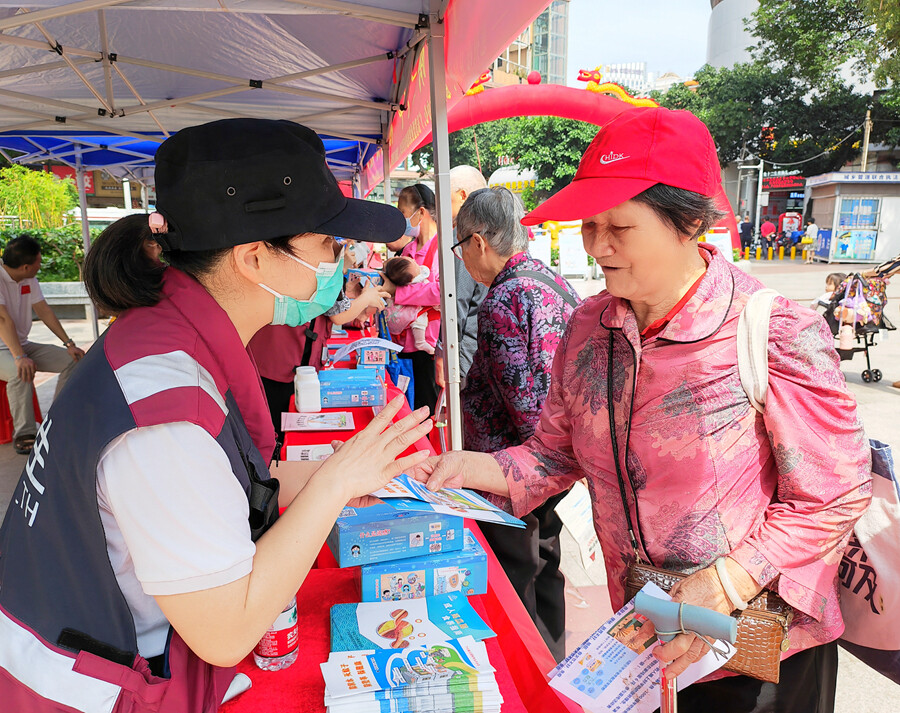 惠州疾控工作人員宣傳預(yù)防傳染病的知識。