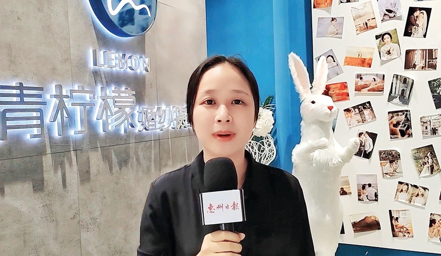 青檸檬婚紗攝影工作室負(fù)責(zé)人燕子接受本報(bào)記者采訪。惠報(bào)全媒體記者朱金贊攝