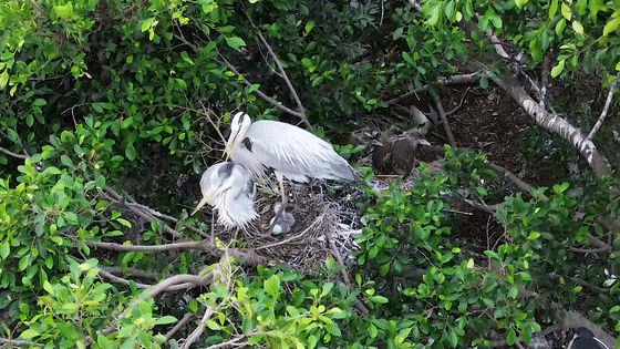 “小鳥們的樂園”里的蒼鷺寶寶,