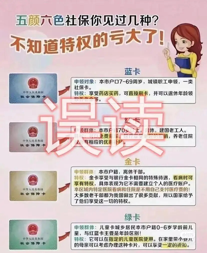 網(wǎng)上流傳“社保卡有四種顏色”的科普帖。