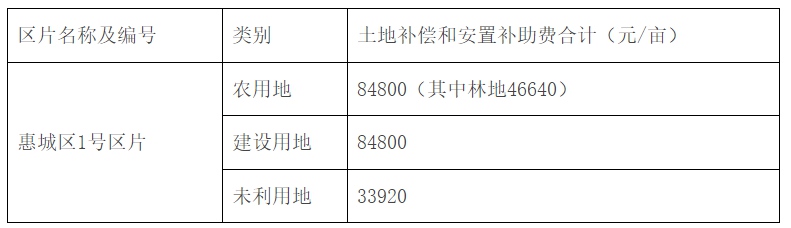 惠城高新區(qū)東江灣千億產業(yè)園(荔枝城東南片區(qū)部分地塊)建設用地和基礎配套建設項目土地預征收