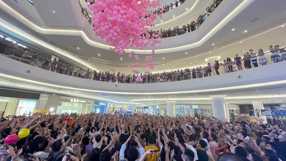 同樣的熱鬧也出現(xiàn)在隆生金山湖中心。或許是受周杰倫《告白氣球》這首歌的啟發(fā),5月20日當天,隆生金山湖中心舉辦了一場“粉色氣球雨”的互動活動。廣東隆生商業(yè)有限公司總經(jīng)理劉來翠介紹,5月20日那天,隆生金山湖中心緊跟“浪漫經(jīng)濟”風口,聯(lián)動各大商家搶抓“甜蜜商機”,發(fā)動浪漫促銷攻勢來拉動消費,通過舉辦樓體城市告白、粉色氣球雨、寵愛甜蜜打卡、商家優(yōu)惠促銷等各種優(yōu)惠活動,吸引了不少市民,市民在商場打卡520專享雙人套餐、送份禮品、看場電影成為標配。5月20日當天,商場客流同比增長97%,銷售同比增加70%,單日銷售創(chuàng)下了今年新高。