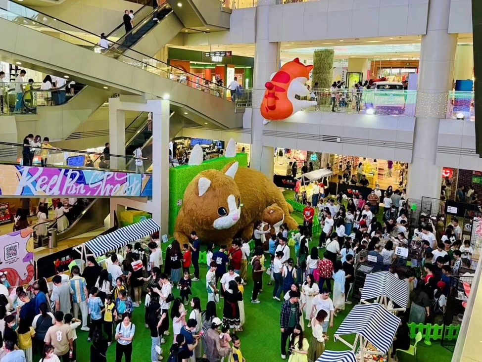 “五一”期間,港惠購物中心舉辦的奇思喵想巨貓樂園活動現(xiàn)場氣氛熱鬧。