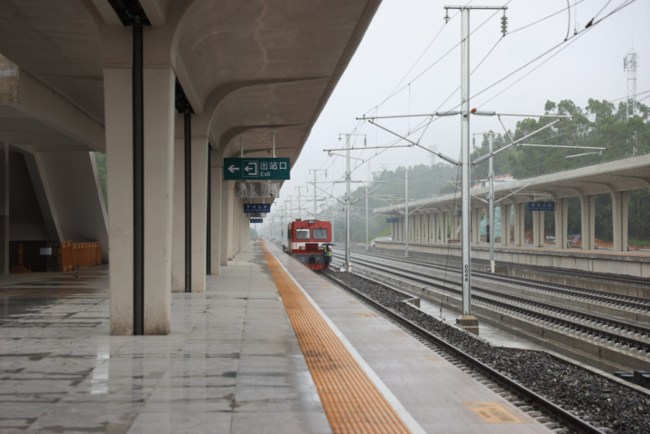 截至5月5日,站臺(tái)部分已經(jīng)完工,正在做站房外立面和室內(nèi)裝修,施工進(jìn)度完成了90%,站房內(nèi)部裝修正在吊頂,鋁板安裝完成了80%,地面鋪裝完成了80%,預(yù)計(jì)6月底完成項(xiàng)目建設(shè)并配合廣汕鐵路的通車試運(yùn)營。