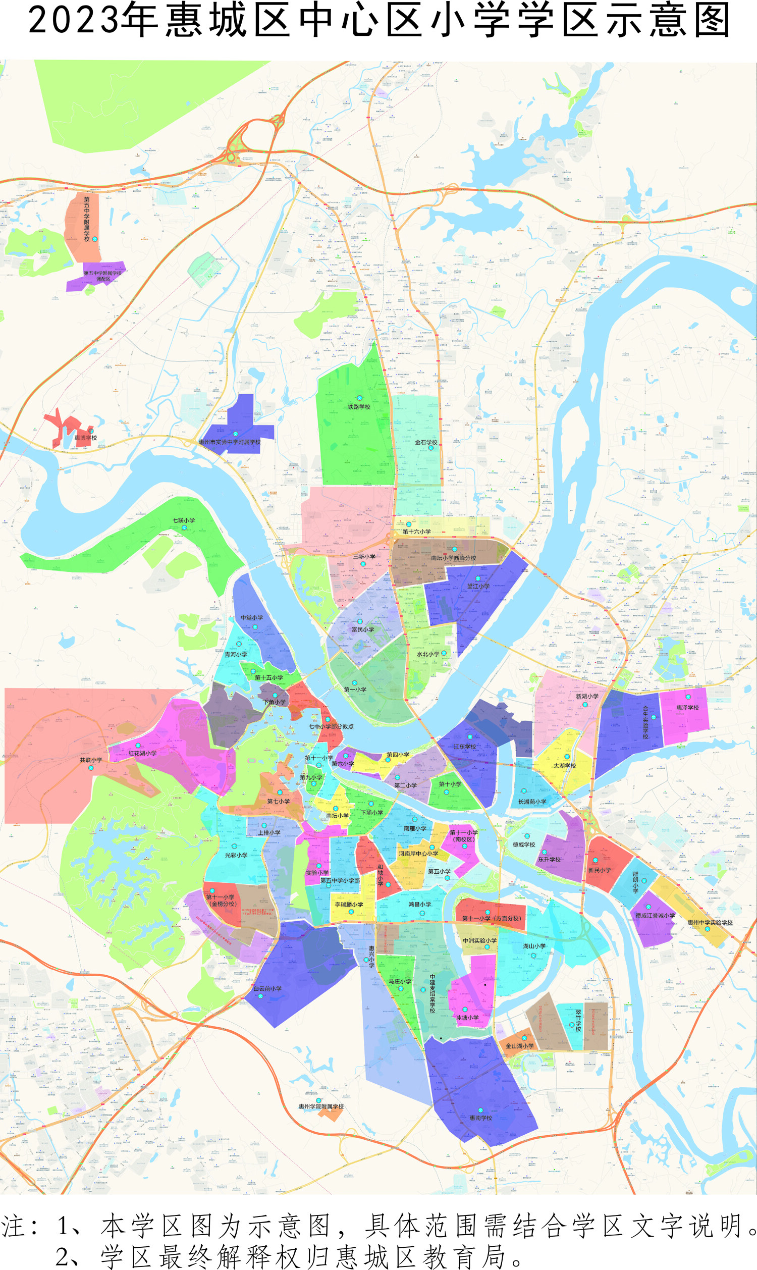 2023年惠城公辦小學和初中學區(qū)劃分公布