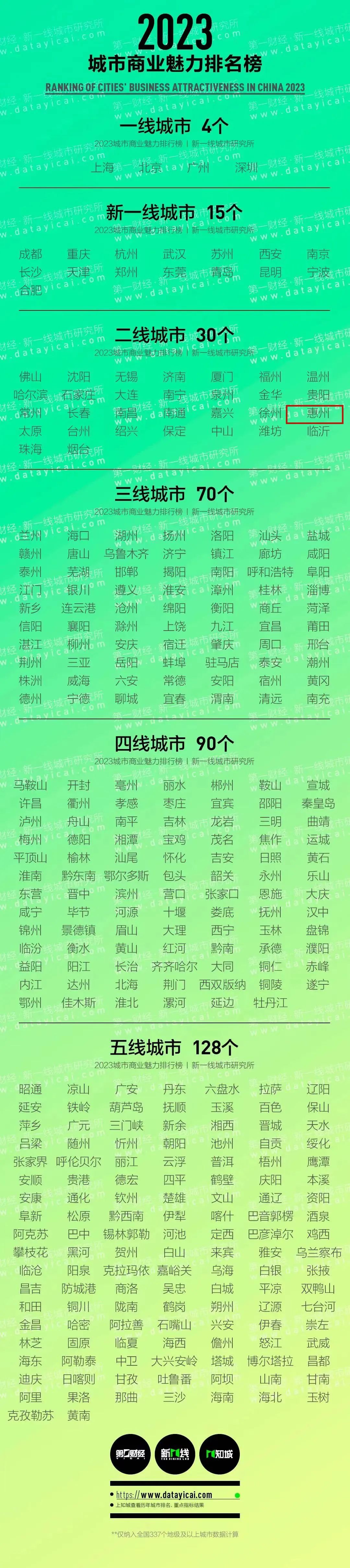 并公布了2023年城市分級完整名單。