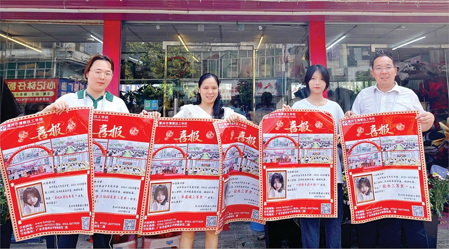 惠州市博賽技工學(xué)校開展家訪送喜報活動。
