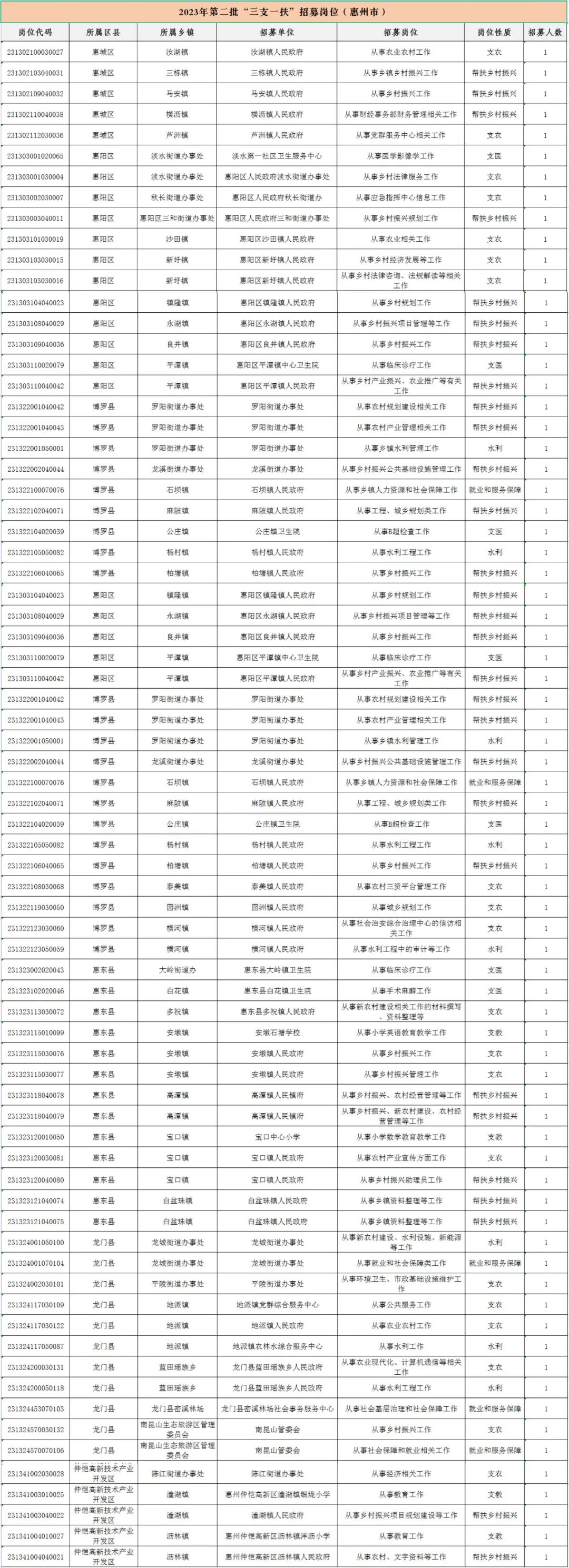 根據(jù)《廣東省2023年高校畢業(yè)生“三支一扶”計劃實施工作方案》和招募崗位空缺情況,現(xiàn)將582個第一批無人報名或無人遞補的崗位及新增崗位予以公布,請未被招募的人員于2023年6月5日上午9點開始至6月8日下午17點截止,登錄報名系統(tǒng)重新選擇崗位填報。省“三支一扶”辦將根據(jù)成績排名確定第二批招募人員。