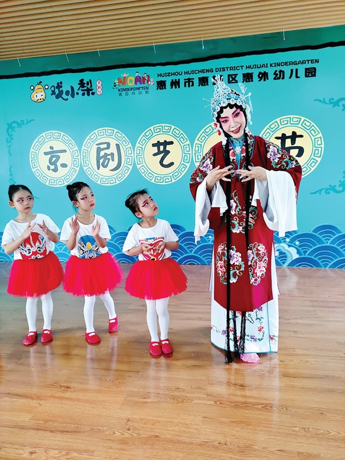 據(jù)國(guó)務(wù)院辦公廳印發(fā)《關(guān)于支持戲曲傳承發(fā)展的若干政策》以及中宣部等部門(mén)聯(lián)合下發(fā)《關(guān)于戲曲進(jìn)校園的實(shí)施意見(jiàn)》等文件精神,近些年,各地對(duì)“京劇進(jìn)校園”進(jìn)行了深度實(shí)踐與探索。如從兩年前開(kāi)始,惠城區(qū)惠外幼兒園依據(jù)幼兒的學(xué)齡特點(diǎn),將京劇藝術(shù)整合滲透到幼兒學(xué)習(xí)生活,陶冶藝術(shù)情操,浸潤(rùn)心靈,獲得更好的發(fā)展。