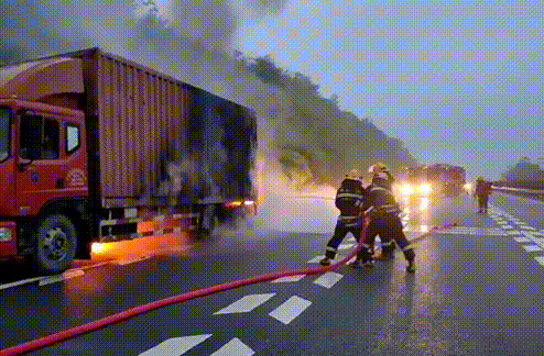 6月7日凌晨4點41分,廣河高速往龍華方向,一輛裝滿快遞的貨車被小轎車追尾引致起火,接警后,消防立即前往處置。