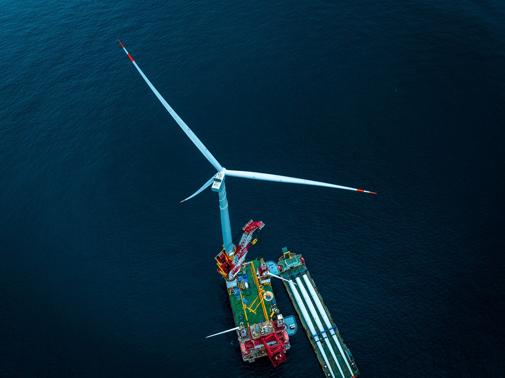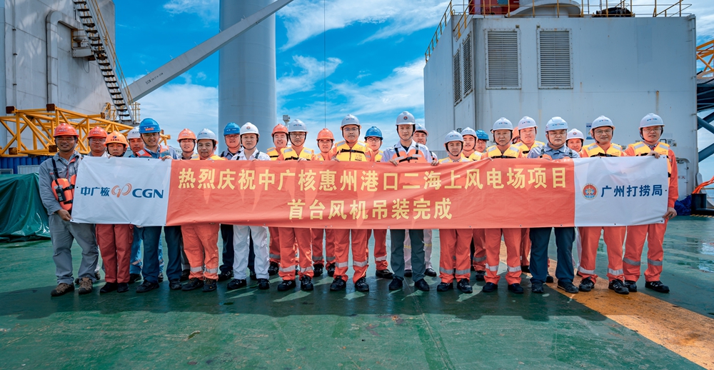 中廣核惠州港口海上風(fēng)電場項目二期完成首臺風(fēng)機吊裝。