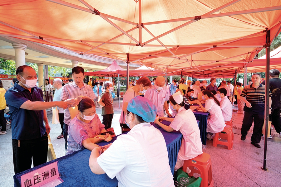 “阿叔,請問您有什么健康問題需要咨詢?”“來這邊,我給您檢查一下。”……惠城區(qū)橋西黨建文化廣場作為活動主會場,很快吸引了一大批社區(qū)群眾和退役軍人及家屬前來咨詢和問診。其他六個分會場醫(yī)療義診活動也得到了社區(qū)群眾的歡迎和普遍好評。據(jù)統(tǒng)計,共有1500多名群眾參加義診,進一步提高了自身的健康意識。惠州市第二人民醫(yī)院、中信惠州醫(yī)院、惠州市種德慈善會、方舟健康體檢、李飛口腔門診部、愛爾眼科及各縣(區(qū))相關(guān)醫(yī)療機構(gòu)80多名醫(yī)護人員志愿者和68名戰(zhàn)旗志愿服務(wù)隊隊員參加活動。
