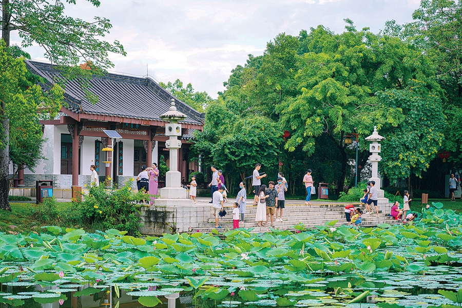 賞荷的市民也成了園內(nèi)的風(fēng)景。