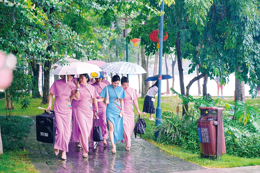 “映湖光,逞新妝。”西湖畔的豐渚園夏日風(fēng)景漸入佳境,見(jiàn)淵亭橋附近的荷花已展風(fēng)姿,園內(nèi)處處被綠色裝點(diǎn),引人入勝。