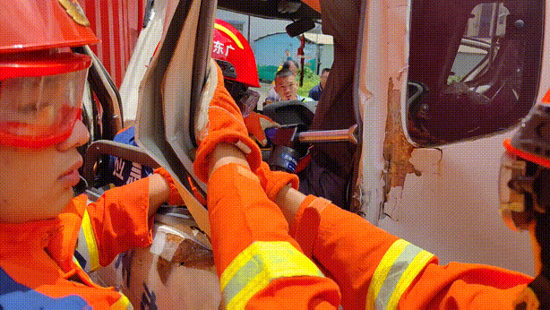 根據(jù)現(xiàn)場(chǎng)情況,消防救援人員立即做好現(xiàn)場(chǎng)警戒,同時(shí)安撫被困人員的情緒,使用液壓破拆組合將貨車主駕駛車門擴(kuò)張開,再合理利用液壓頂桿將被困人員救出。經(jīng)過(guò)10分鐘的救援,被困人員被救出并由現(xiàn)場(chǎng)醫(yī)護(hù)人員送往醫(yī)院救治。
