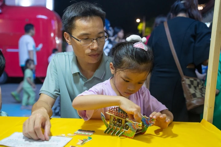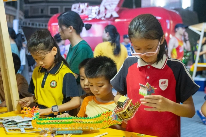 龍舟創(chuàng)意手工模型拼接區(qū)吸引了許多孩子和家長,他們一起參與手工制作,感受著傳統(tǒng)手藝的魅力。