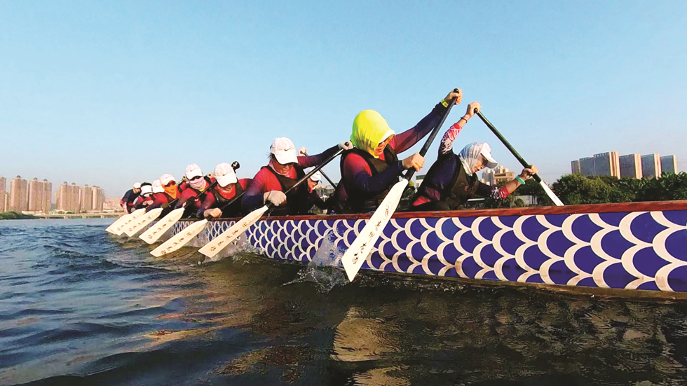 “別看我們是女隊,速度、耐力練習和陸上訓練一樣不少。”余冰告訴記者,隊員們堅持訓練的勁頭值得點贊,“我們女子龍舟隊出勤率是最高的”。