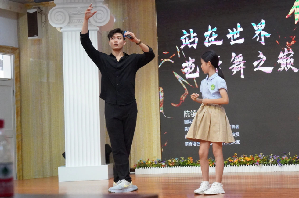 陳鎮(zhèn)威指導麥地小學的學生跳芭蕾。