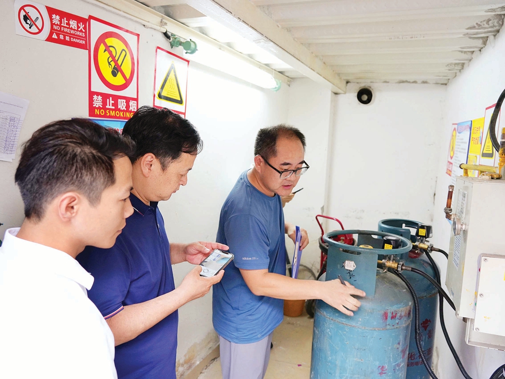 督查組和燃?xì)獍踩珜<覚z查人員密集場所用氣安全。惠州日報記者張藝明 李松權(quán) 朱金贊 攝