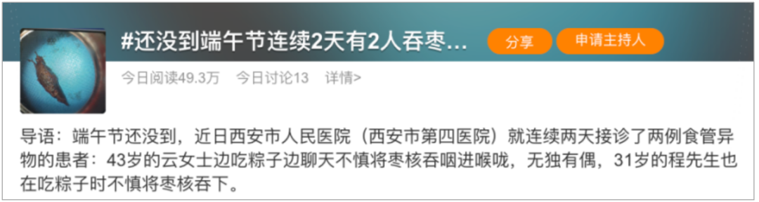 31歲的程先生也在吃粽子時不慎將棗核吞下。