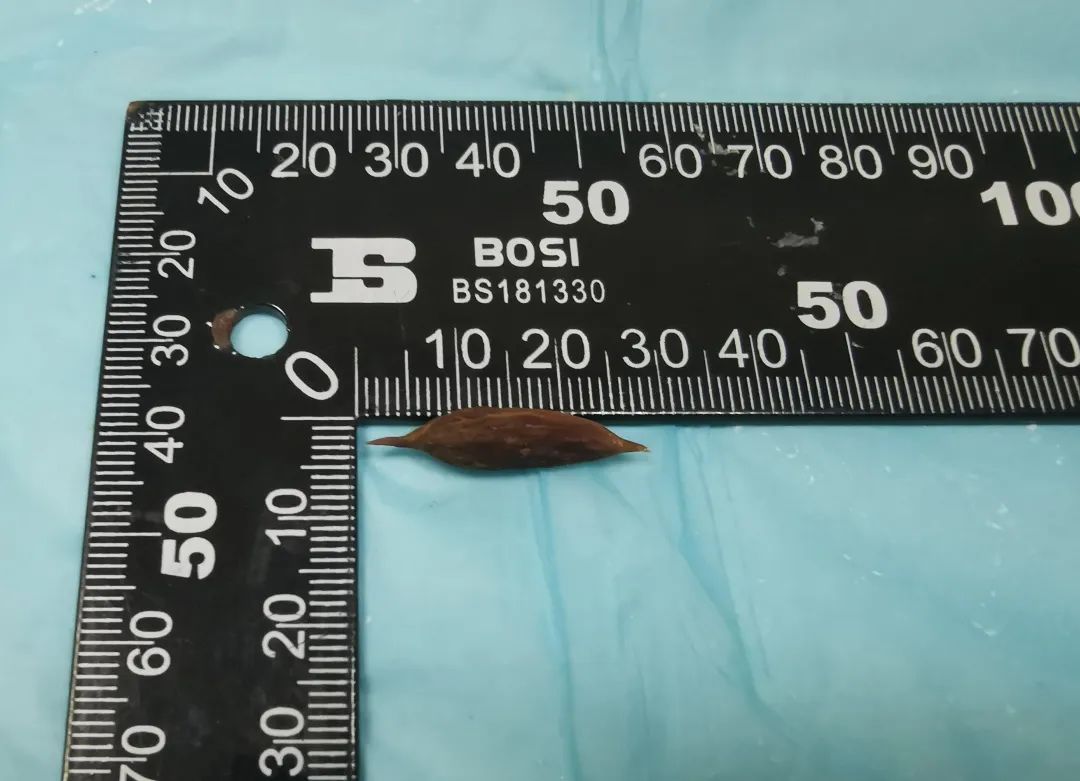 據了解,6月17日,43歲的云女士在家吃早飯時,邊吃粽子邊和家人聊天的她不慎將棗核吞咽進喉嚨。后在家附近醫(yī)院就診未能取出,遂來到該院大差市院區(qū)急診科就診。醫(yī)生檢查發(fā)現,這顆4~5厘米的棗核兩端已刺入云女士的食管,形成潰瘍,周圍黏膜出現水腫。