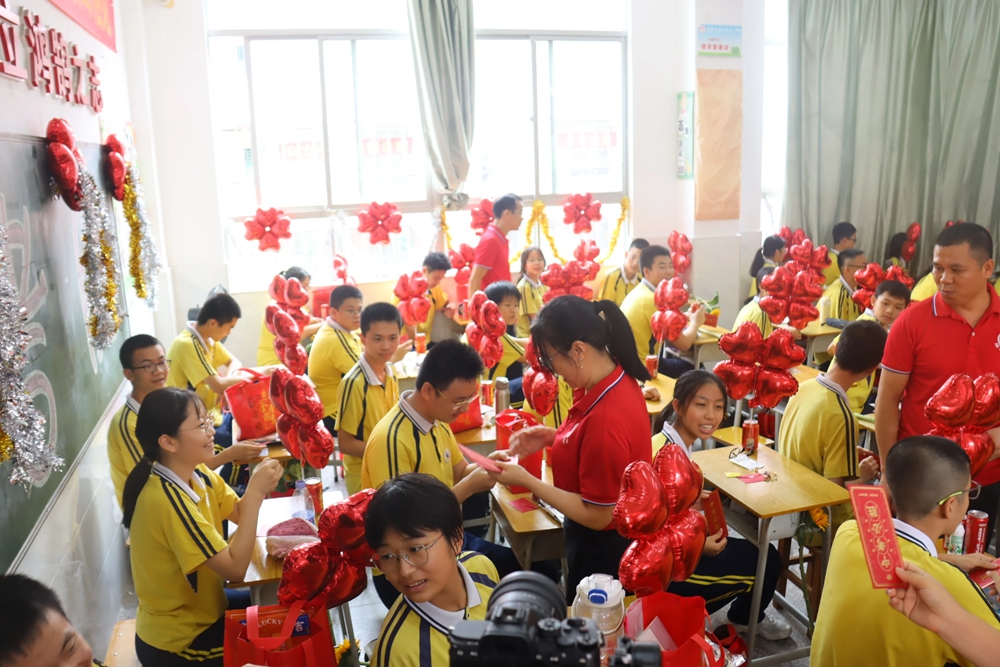 惠州市惠臺(tái)學(xué)校老師為考生送上寫有“中考必勝”“金榜題名”的紅包。