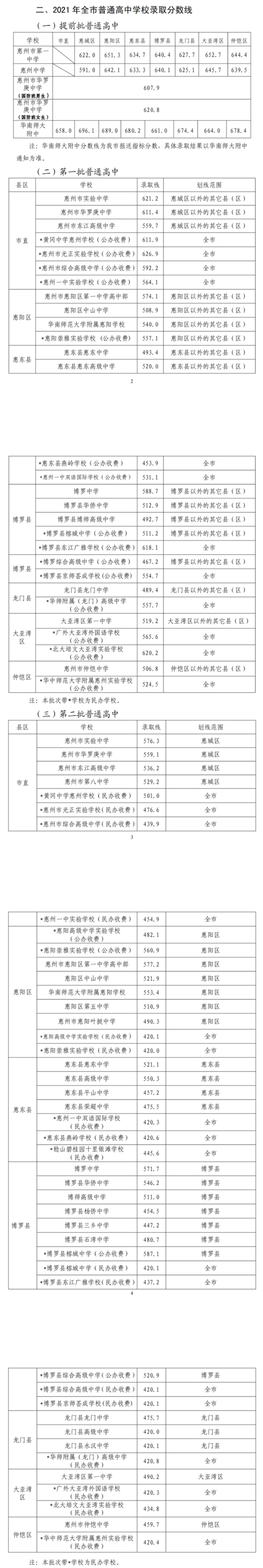 2021年惠州普通高中各批次錄取分?jǐn)?shù)