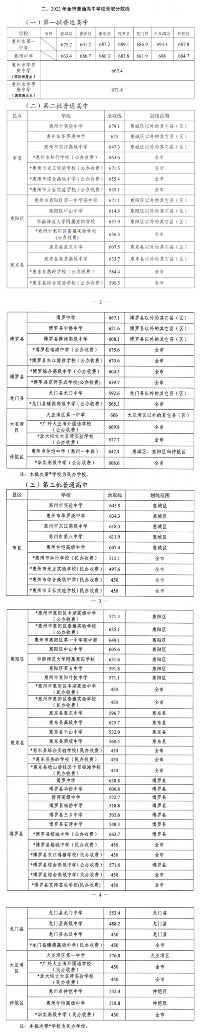 2022年惠州普通高中各批次錄取分?jǐn)?shù)
