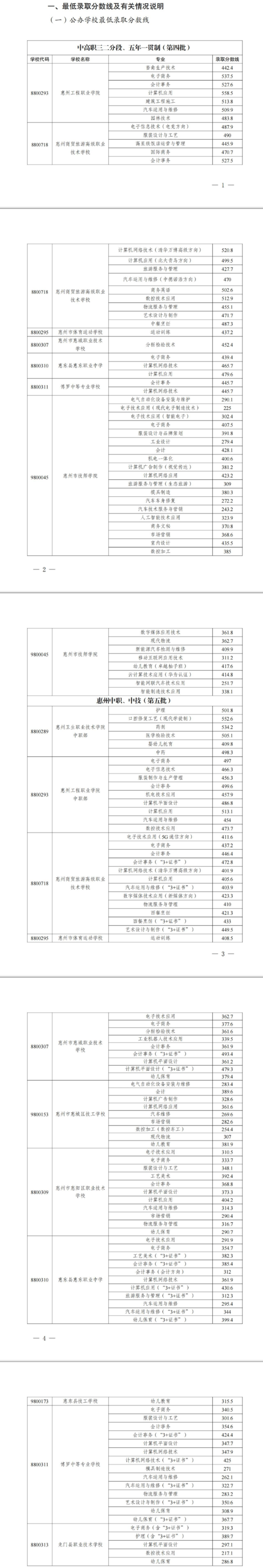 2022年惠州公辦中職技工院校錄取分?jǐn)?shù)線
