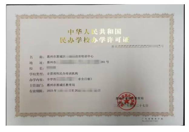 校外培訓(xùn)機構(gòu)應(yīng)有教育行政部門頒發(fā)的《中華人民共和國民辦學(xué)校辦學(xué)許可證》(以下簡稱“辦學(xué)許可證”)和《民辦非企業(yè)單位登記證書》或《工商營業(yè)執(zhí)照》,并懸掛在培訓(xùn)場所顯著位置,且按照辦學(xué)許可證審批的培訓(xùn)項目來開展培訓(xùn)。往往很多家長要求機構(gòu)出示相關(guān)證件,而看到的只有《工商營業(yè)執(zhí)照》,經(jīng)營范圍中雖有教育咨詢、教育信息咨詢服務(wù)等涉“教育”字樣,但未取得《辦學(xué)許可證》的機構(gòu)不屬于證照齊全的合規(guī)機構(gòu)。