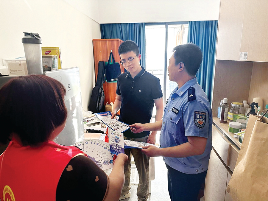 惠南科技園加強(qiáng)網(wǎng)格化管理,精細(xì)化服務(wù)群眾。這是工作人員入戶宣傳反詐知識(shí)。惠州日?qǐng)?bào)記者林麗娟 攝