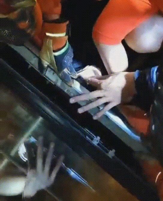 消防救援人員迅速制定并實(shí)施救援方案,由指揮員用鐵挺從扶梯邊緣縫隙進(jìn)行撬動(dòng)并牢牢撐住,撬開一個(gè)作業(yè)空間。一名隊(duì)員利用電動(dòng)擴(kuò)張器進(jìn)行擴(kuò)張作業(yè),時(shí)刻關(guān)注幼兒的情況并安撫其情緒。大約5分鐘后,扶梯連接處有松動(dòng),另一名隊(duì)員迅速將幼兒腳部往外抽出,并交由120進(jìn)行檢查治療。
