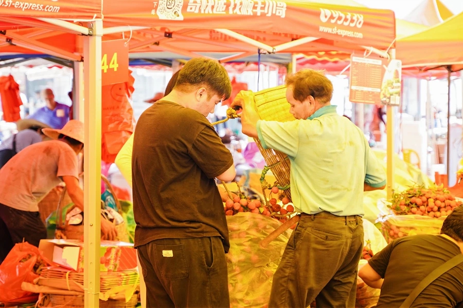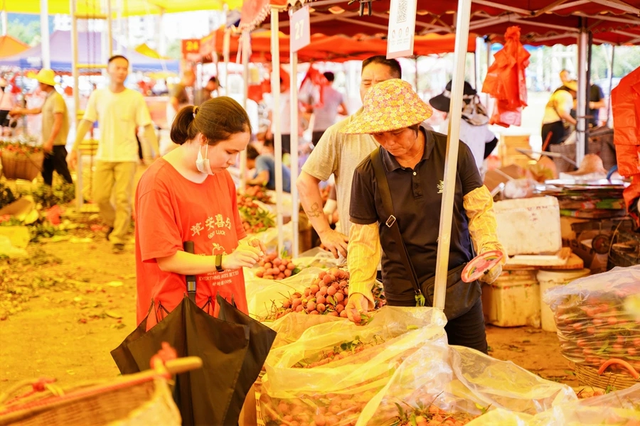 作為首屆東坡粉絲大會暨2023年惠州東坡文化旅游周的系列活動之一,不少市民、游客前來鎮(zhèn)隆荔枝交易中心內(nèi)“打卡”、品嘗、購買,紛紛感受荔枝豐產(chǎn)年的快樂。