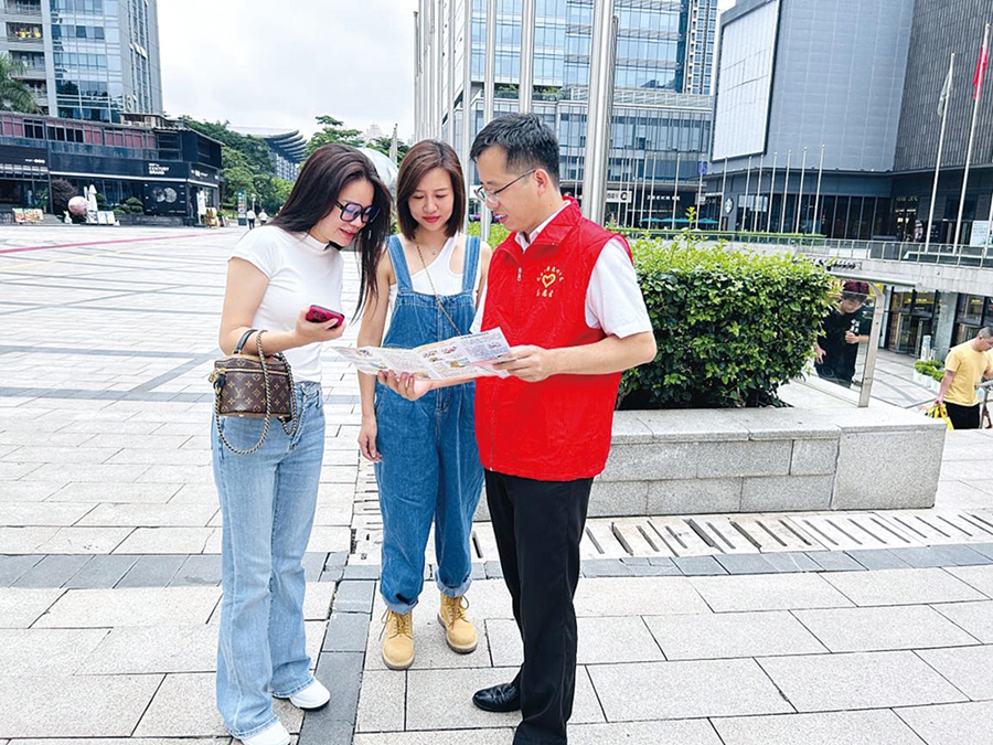 宣教小組向市民發(fā)放折頁宣傳保險金融的功能作用。