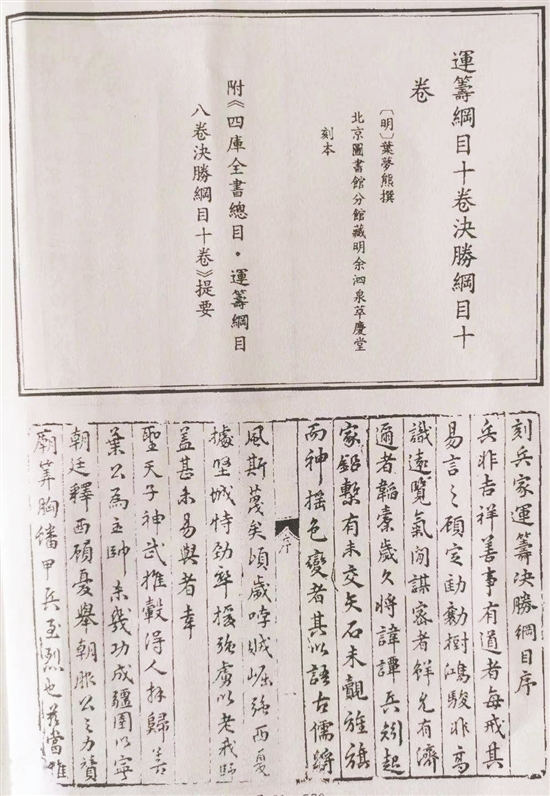 葉夢(mèng)熊《運(yùn)籌綱目》刻本