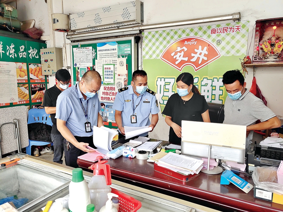 市場監(jiān)管執(zhí)法人員到凍庫檢查。惠州日報(bào)記者許文昌 攝
