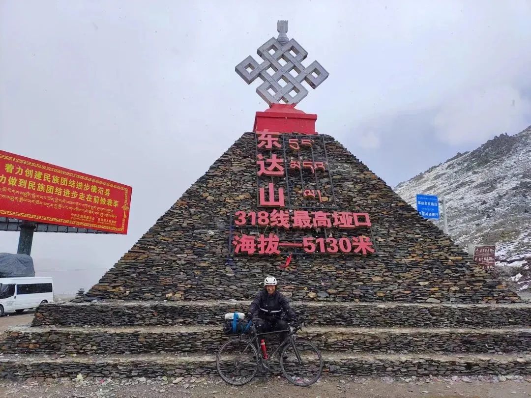 被問及這次旅途中對(duì)哪個(gè)地點(diǎn)的印象最深刻,楊旭回答道:“折多山和東達(dá)山。”折多山是318川藏線上第一座海拔4000米以上的山,也是旅途中的第一座大雪山,直面雪山,風(fēng)光旖旎,震撼人心,令人印象深刻。而翻越此行海拔最高的東達(dá)山應(yīng)該是最不容易的了,海拔5130米,氧氣稀薄,天氣惡劣多變,晴雪突轉(zhuǎn),騎行難度最大,“東達(dá)山是我一路上最難熬的地方。”這些難忘的經(jīng)歷已作為精神的泉水汩汩流入他的身體,成為了他的一部分,或許影響勵(lì)志他一生。