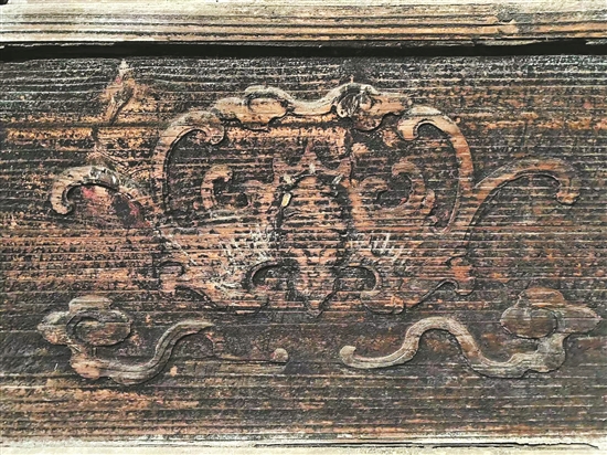 譚氏宗祠內(nèi),“五蝠來朝”木雕圖案栩栩如生