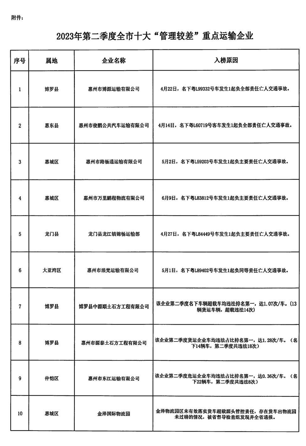重點運輸企業(yè)都是惠州交警