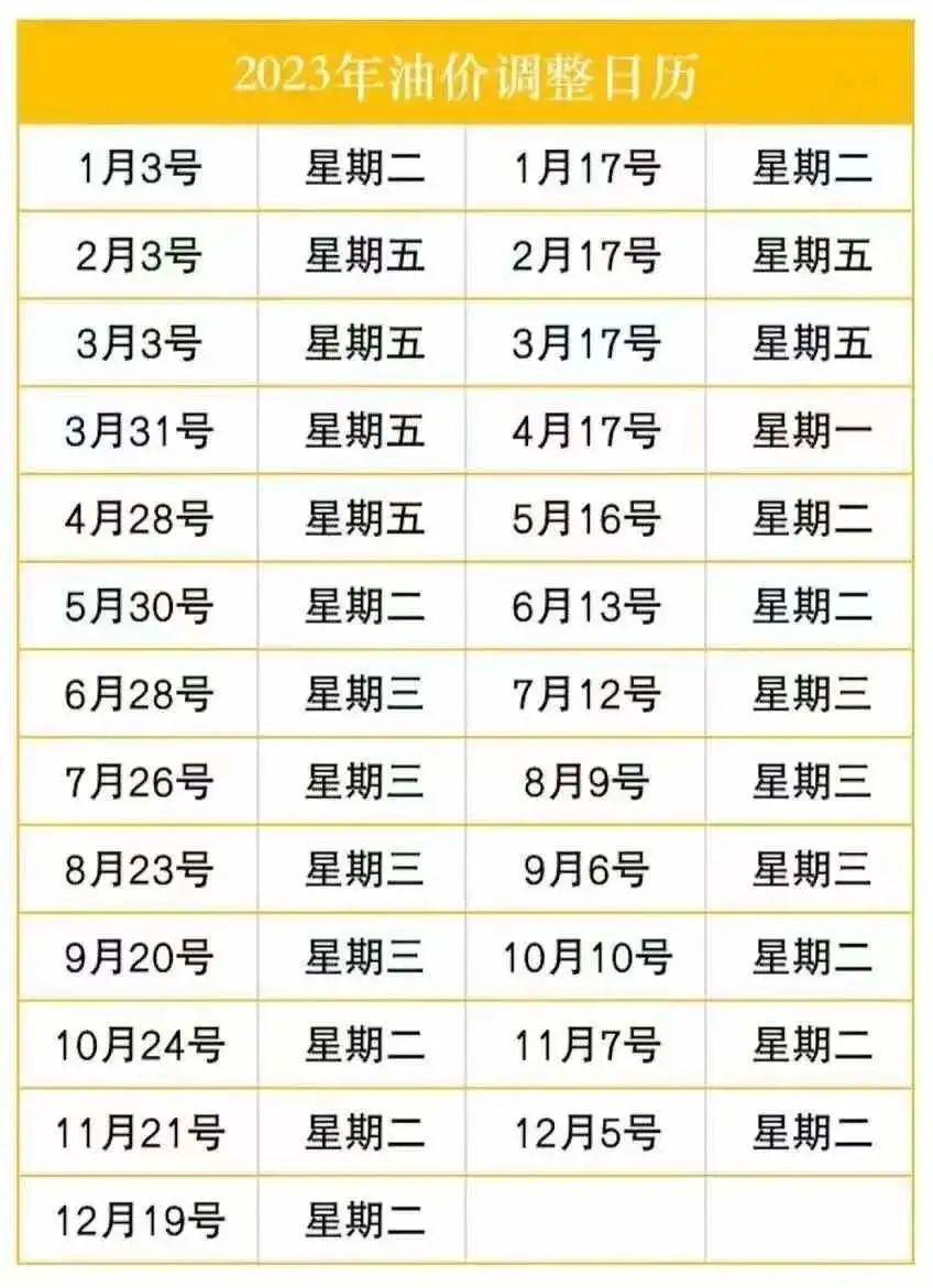 油價具體調整情況,
