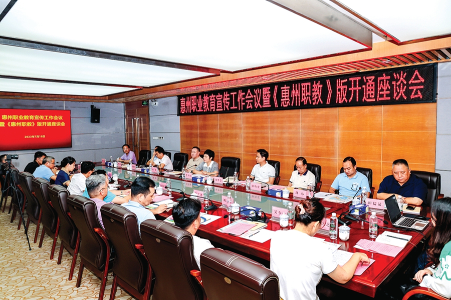 7月18日,由惠州市教育局、惠州市人力資源和社會保障局、惠州日報社、惠州市職教協(xié)會共同主辦的惠州職業(yè)教育宣傳工作會議暨《惠州職教》版開通座談會在惠州日報社舉行,來自惠州職教界的大咖們紛紛圍繞借力主流媒體、做好職教宣傳進行主題發(fā)言。大家表示,當前開通《惠州日報·惠州職教》版(以下簡稱《惠州職教》)、“惠職惠教”微信公眾號和視頻號正逢其時,是宣傳惠州職業(yè)教育最好的平臺,對職業(yè)學校而言是福音。大家希望借助權威媒體的力量,通過全媒體手段宣傳職教政策、塑造職業(yè)教育正面形象,營造讀職業(yè)學校同樣前途廣闊、大有可為的社會氛圍。