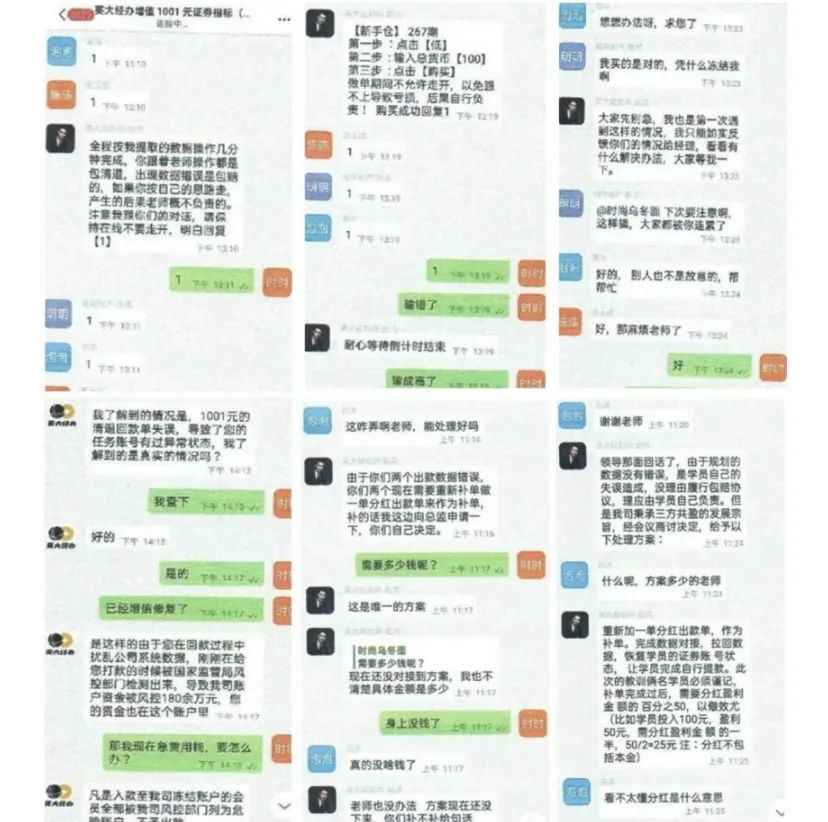 見到有利可圖,小檬在對(duì)方的指導(dǎo)下繼續(xù)購買了1211元“證券隨后對(duì)方以“清退學(xué)員較多需要隨即匹配統(tǒng)一金額學(xué)員一起完成回款指標(biāo)”為由將小檬拉進(jìn)一群聊 (群名:英大經(jīng)辦增值1211元證券指標(biāo)群) ,群里一個(gè)“監(jiān)管員”,一個(gè)“規(guī)劃師”,4個(gè)辦理回款學(xué)員 (3個(gè)是托)。小檬按照“規(guī)劃師”的指引繼續(xù)操作,隨后對(duì)方以操作失誤為由,要求小檬繼續(xù)增加充值額度以尋求一次性匯款成功。7月2日至18日期間,小檬在對(duì)方誘導(dǎo)下多次向指定銀行賬戶轉(zhuǎn)賬370291元。